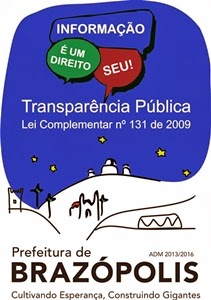 Acesse www.brazopolis.mg.gov.br e clique em no link Transparência.